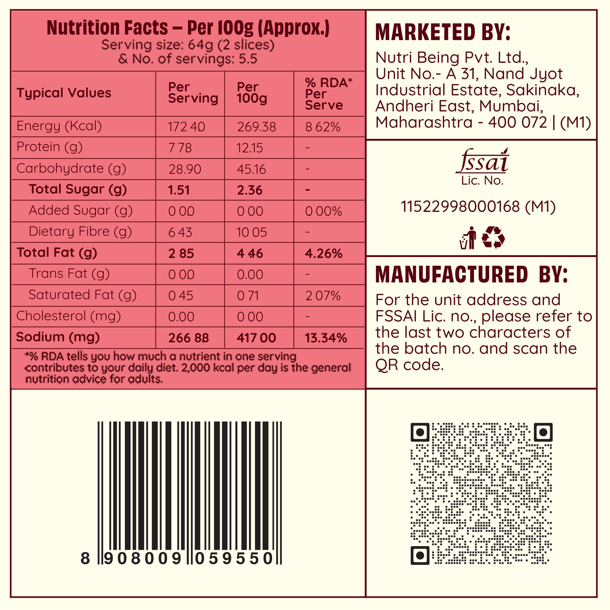 Chakki Fresh Atta, Multigrain Seed Mix (Rolled Oats, Barley Flakes, Flax Seeds, Sunflower Seeds, White Sesame Seeds, Soya Bean Seed Grits, Watermelon Seeds), Wheat Gluten, Olive Oil (Edible Vegetable Oil), Iodised Salt.