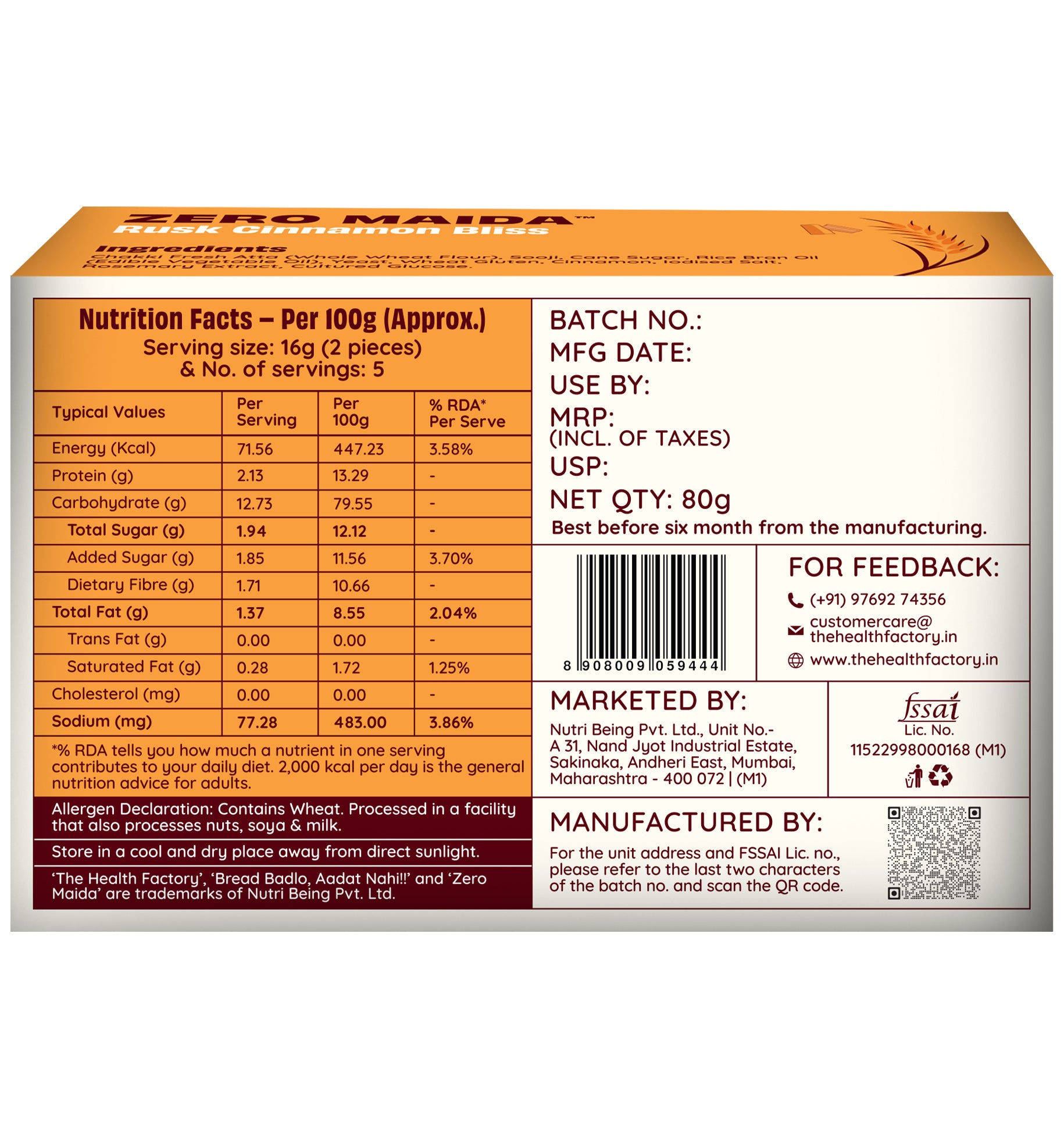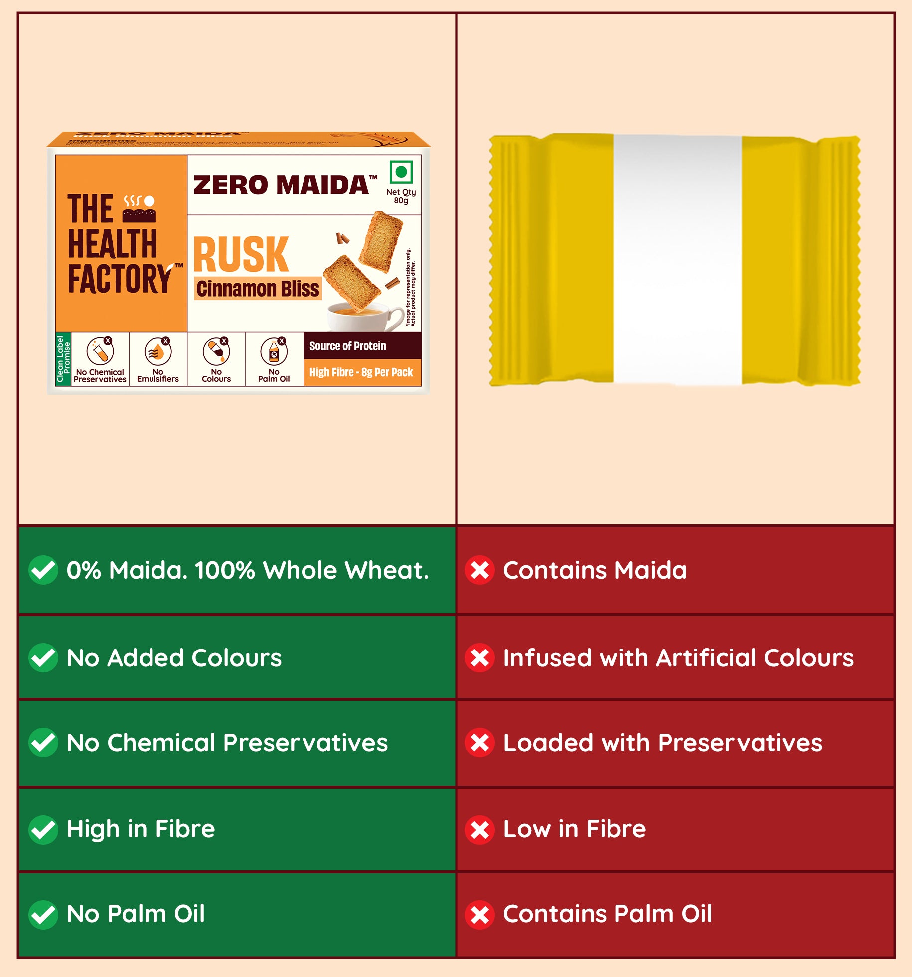 The sweet spot between healthy & yummy. With a hint of warm cinnamon and our clean no-maida recipe, we’ve given your favourite rusk a healthy upgrade. It’s crisp, comforting, and loaded with 8 grams of fibre. Because the food you eat the most should do the most for you. Every day. For everyone.