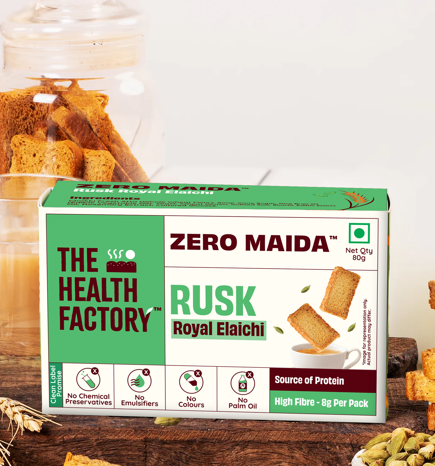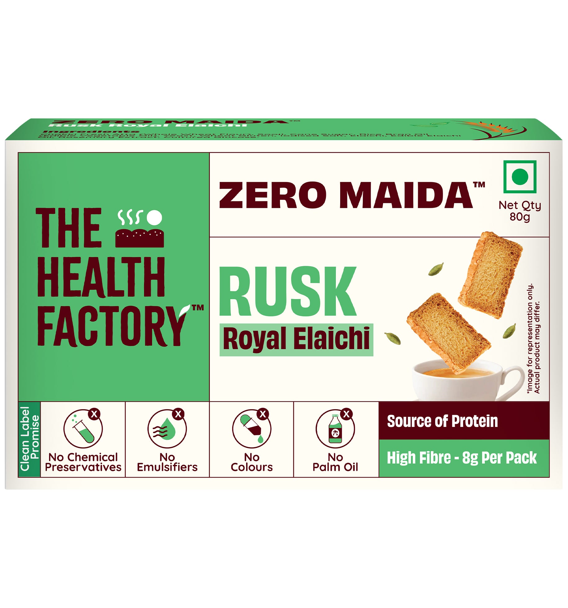 Tastes like comfort and healthy choices. A crisp, comforting rusk with the nostalgic warmth of cardamom. Made with no maida, clean ingredients, and a fibre boost of 8g per pack. No frills, just real goodness in every bite. Because the food you eat the most should do the most for you. Every day. For everyone.