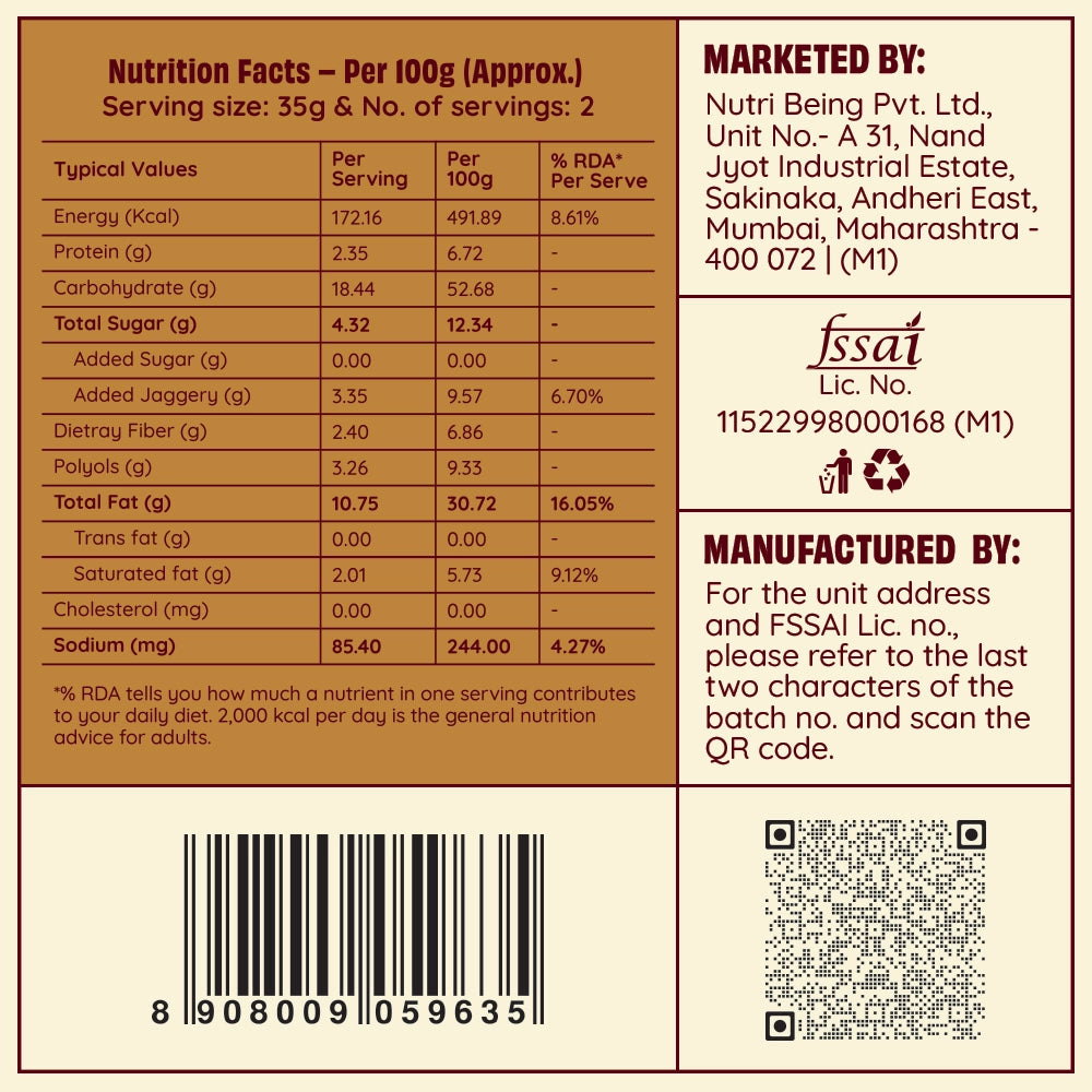 All three flavours are formulated with a clean label philosophy. Key ingredients include whole wheat flour (chakki fresh atta), rice bran oil, jaggery, maltitol, fructooligosaccharide, whey protein concentrate, and natural flavourings. They are free from chemical preservatives, refined sugar, and palm oil, aligning with The Health Factory’s clean-label commitment.