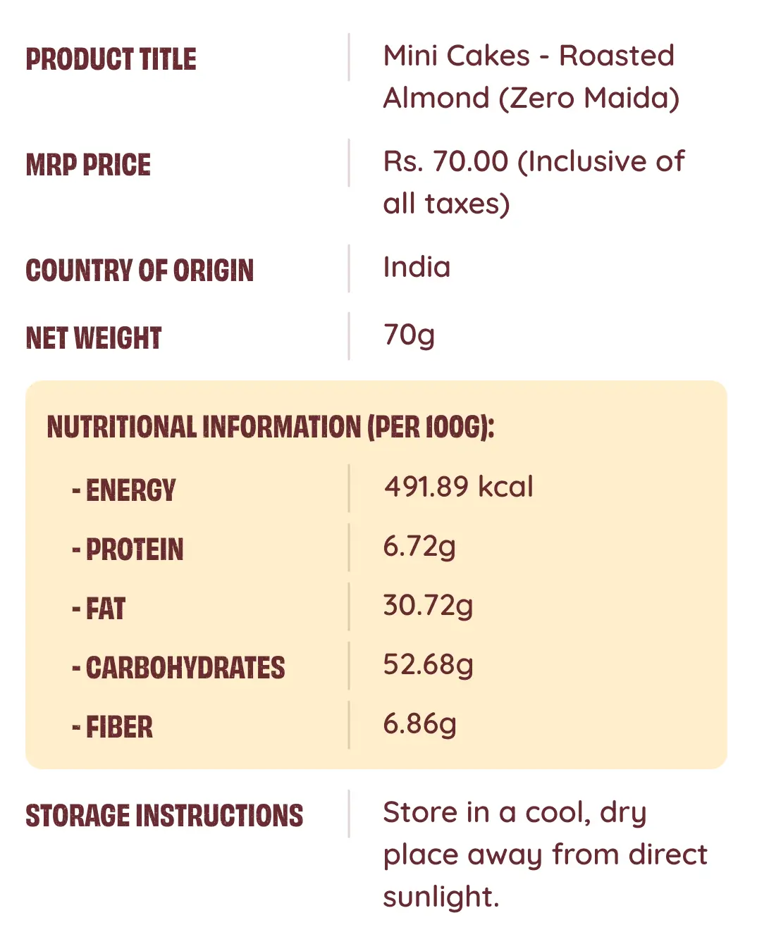 A soft, fluffy bite layered with the crunch of almonds, this melt-in-the-mouth mini cake delivers pure indulgence in every bite. Made with Zero Maida for snacking that’s delicious without the guilt.