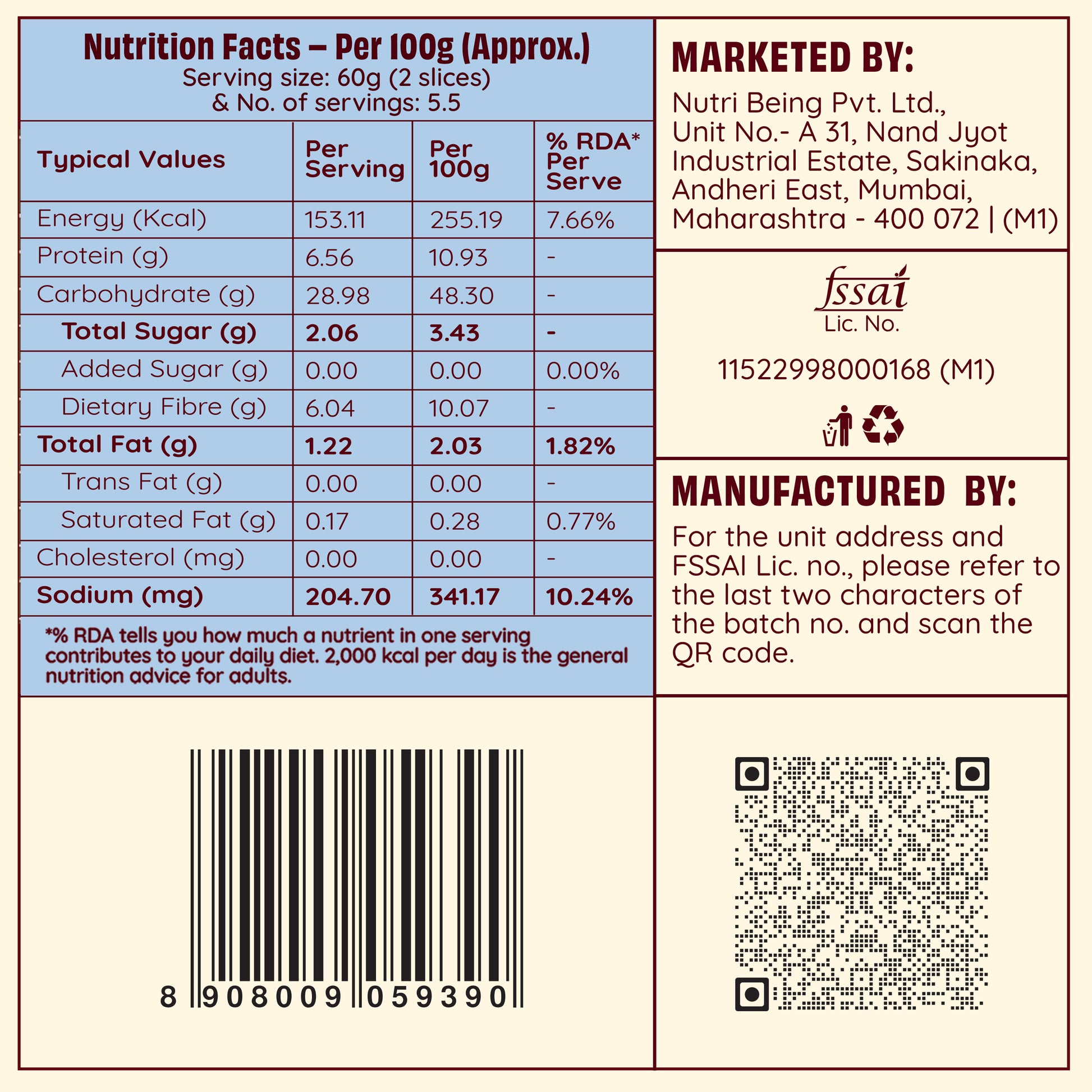 Manufactured in a facility that also processes refined wheat flour, nuts, soy, and milk.
