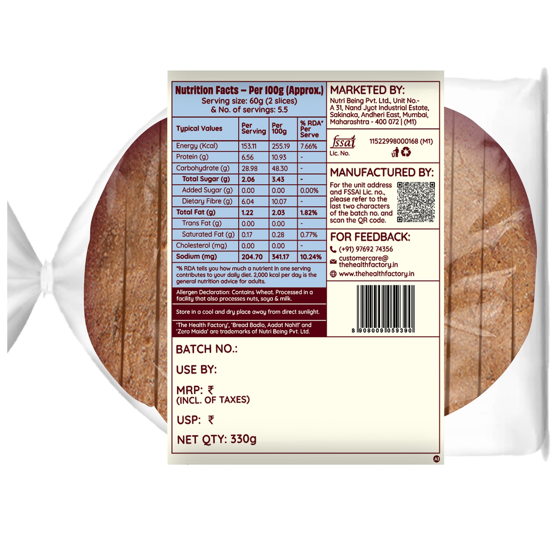 Each pack contains 11 slices. (330gm)