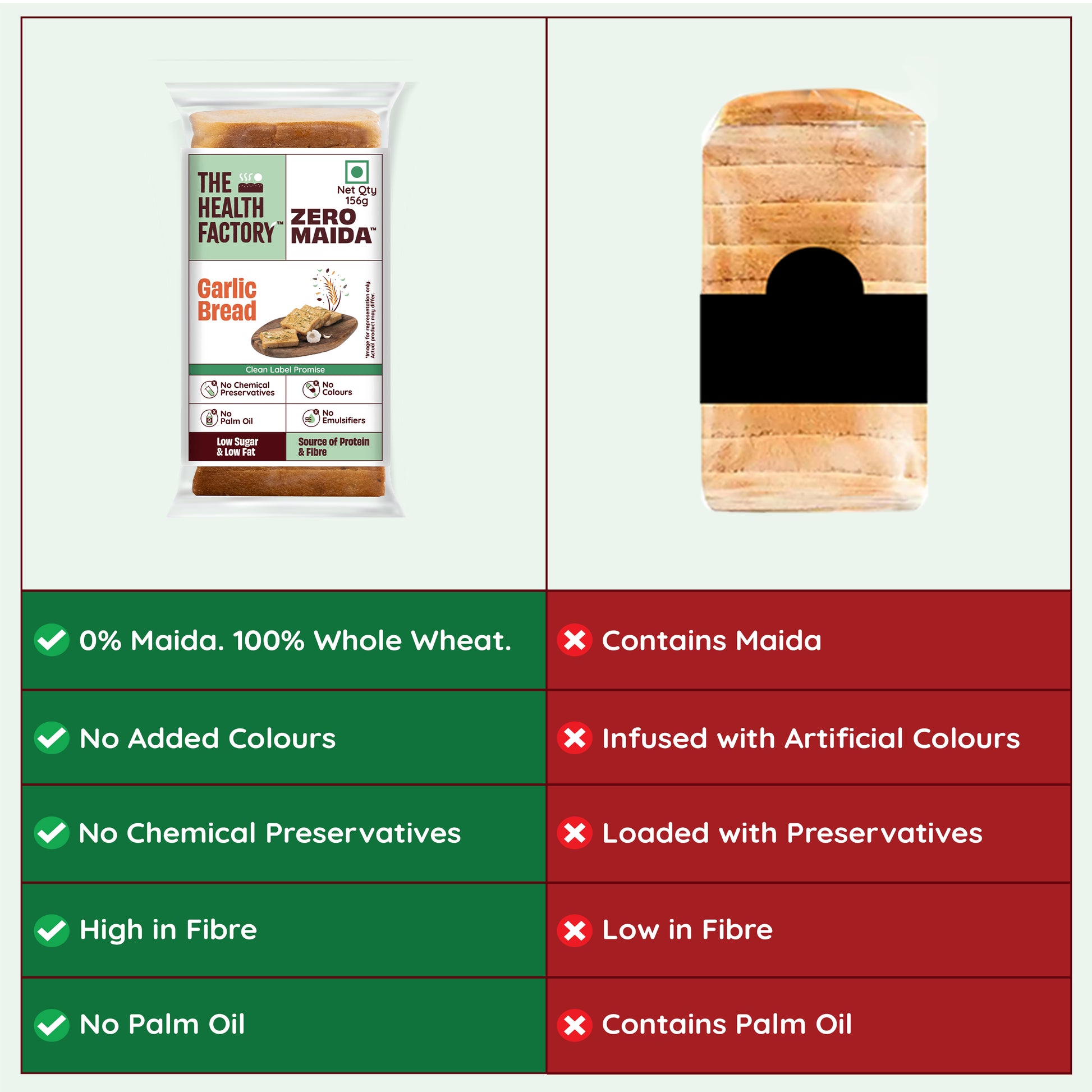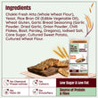 Chakki Fresh Atta (Whole Wheat Flour), Yeast, Rice Bran Oil (Edible Vegetable Oil), Wheat Gluten, Garlic Bread Seasoning (Garlic Powder, Dried Garlic, Onion Powder, Chilli Flakes, Basil, Parsley, Oregano), Iodised Salt, Cane Sugar, Cultured Sweet Potato, Cultured Wheat Flour.