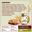Chakki Fresh Atta (Whole Wheat Flour), Kulcha Seasoning (Oregano Flakes, Chilli Flakes, Black Pepper, Onion Powder, Ginger Powder, Kasuri Methi, Garlic Powder), Yeast, Wheat Gluten, Iodised Salt, Rice Bran Oil (Edible Vegetable Oil), Cane Sugar, Cultured Wheat Flour, Cultured Sweet Potato, Cultured Glucose.