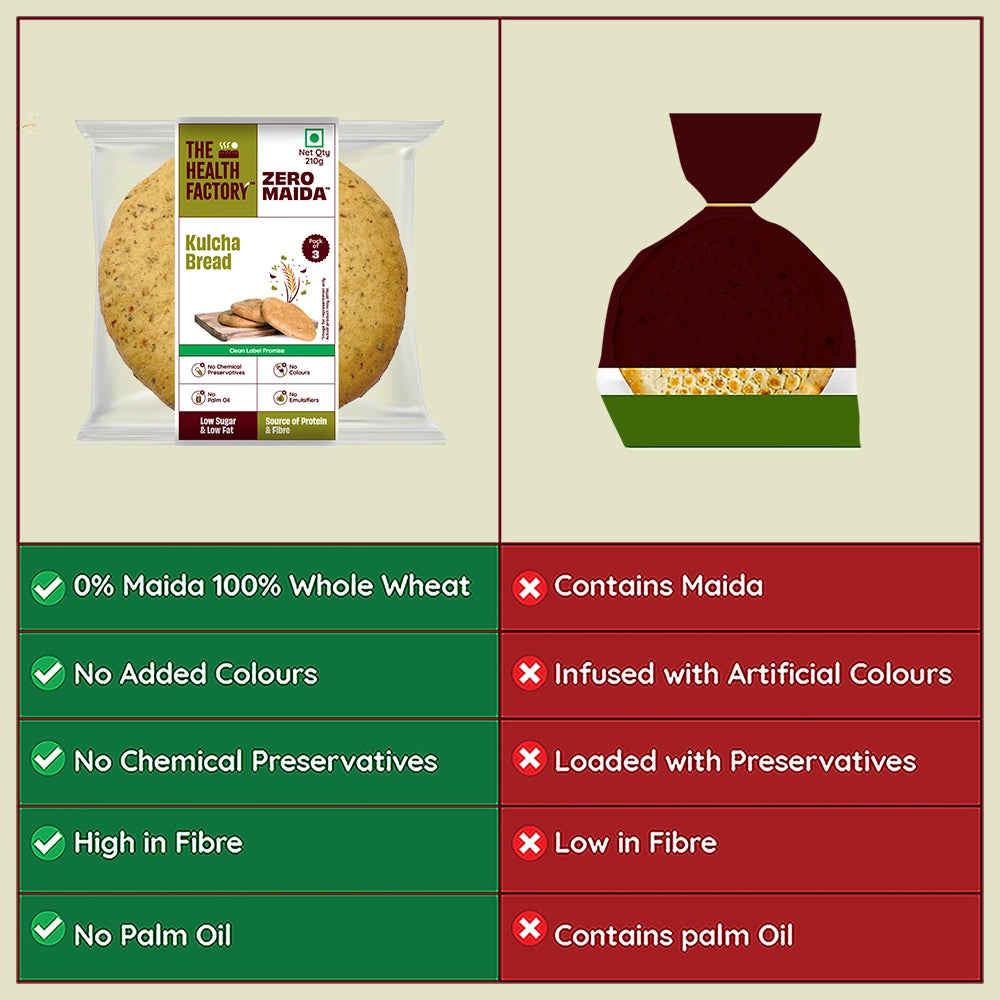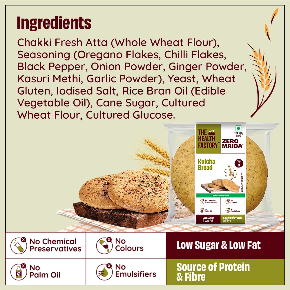 Introducing the all-new Zero Maida Kulcha Bread! Made with 100% Whole Wheat and a blend of aromatic spices, this soft and flavorful bread is perfect for pairing with your favorite gravy. Enhance your traditional meals with a delicious and nutritious twist!