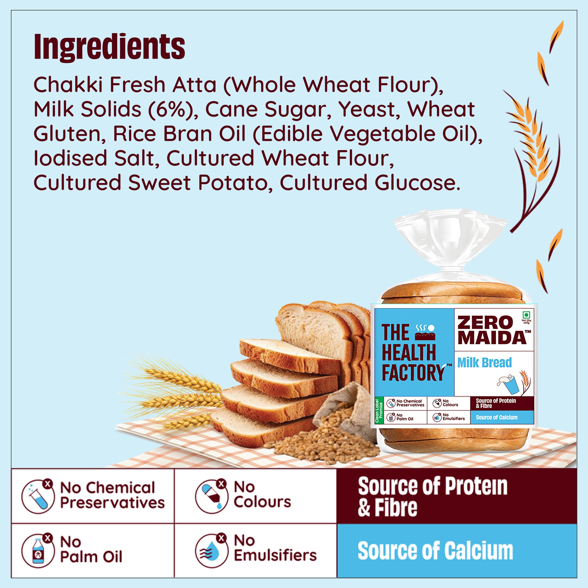 Chakki Fresh Atta (Whole Wheat Flour), Milk Solids (6%), Cane Sugar, Yeast, Wheat Gluten, Rice Bran Oil (Edible Vegetable Oil), Iodised Salt, Cultured Wheat Flour, Cultured Sweet Potato, Cultured Glucose.