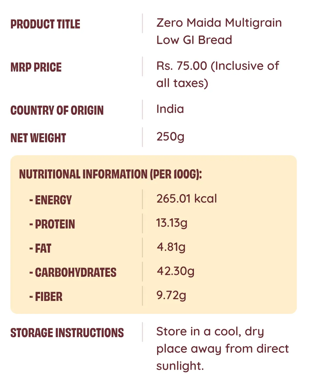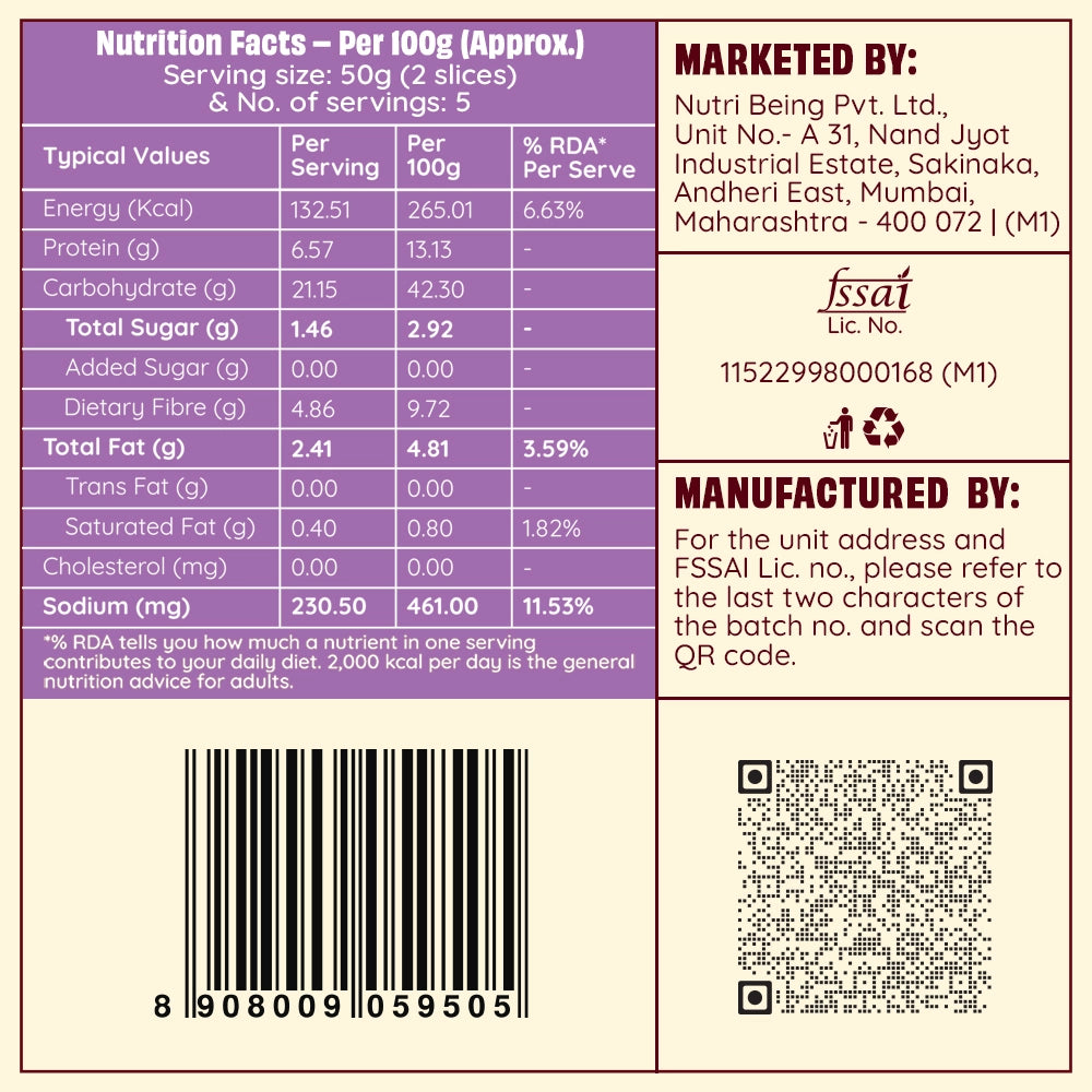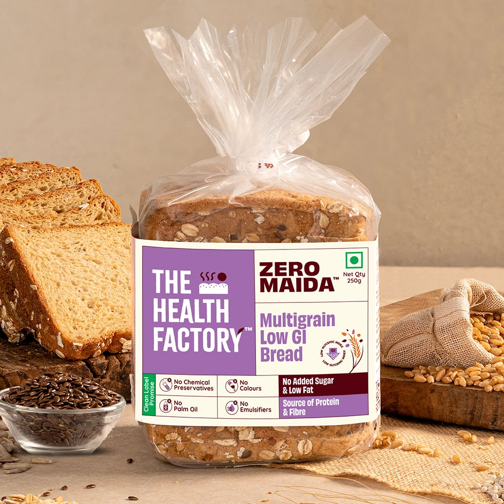 Made with 100% Whole Wheat Chakki Fresh Atta, a powerful mix of grains & seeds & a nourishing protein blend, our Zero Maida Low GI Bread keeps you full for longer and supports blood sugar management. Backed by our Clean Label Promise – No Maida, Preservatives, Emulsifiers, or Palm Oil. A smarter choice for steady energy to power you through the day.Healthy Fibre, Happy Gut- Up to 10g Fibre in 2 slices