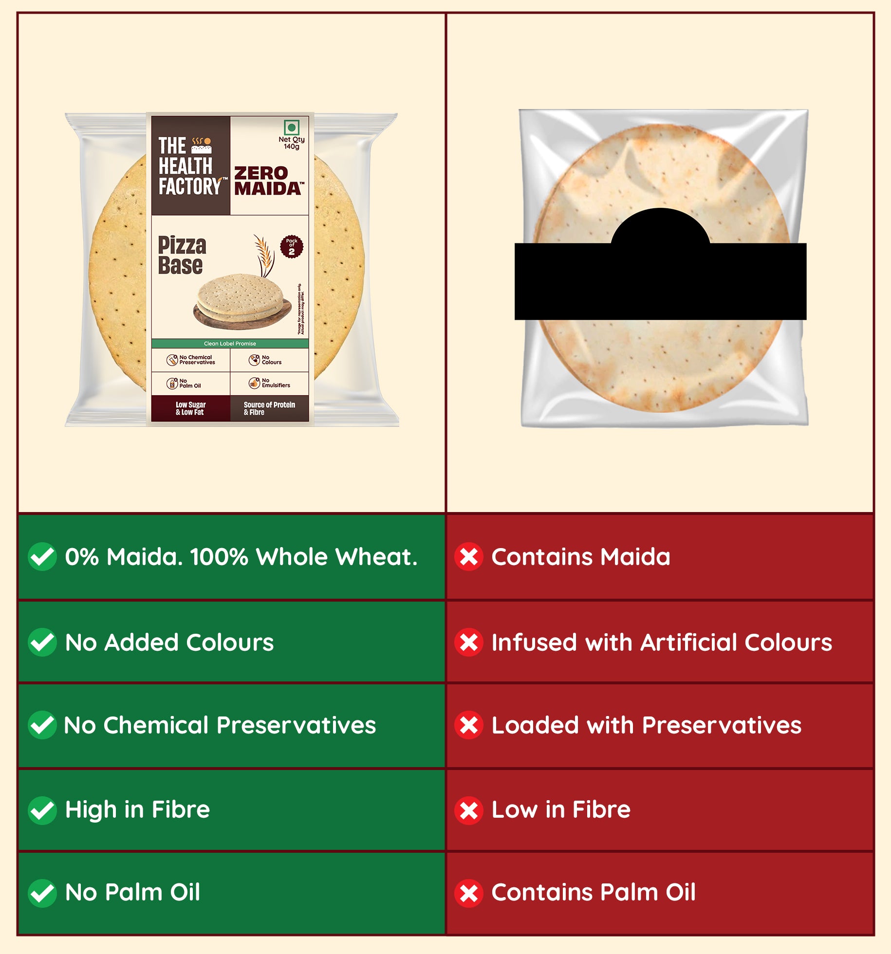 Each pack contains 2 Zero Maida Pizza Base. (140gm)