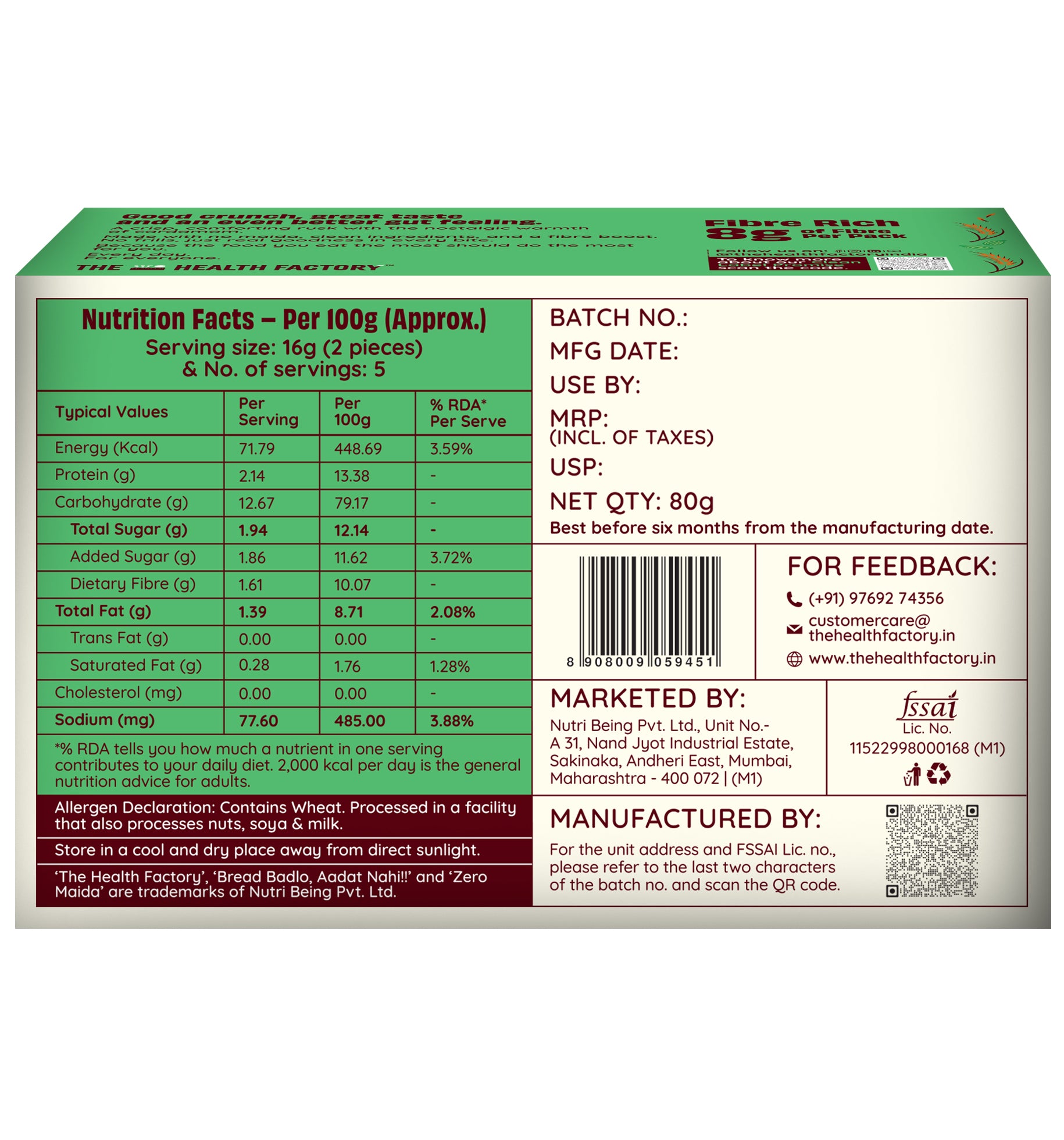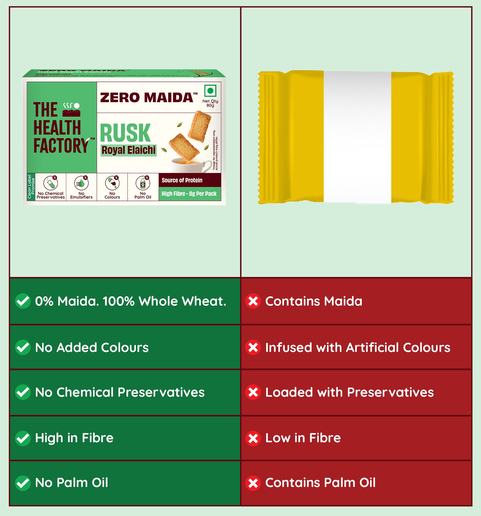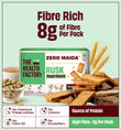 Tastes like comfort and healthy choices. A crisp, comforting rusk with the nostalgic warmth of cardamom. Made with no maida, clean ingredients, and a fibre boost of 8g per pack. No frills, just real goodness in every bite. Because the food you eat the most should do the most for you. Every day. For everyone.